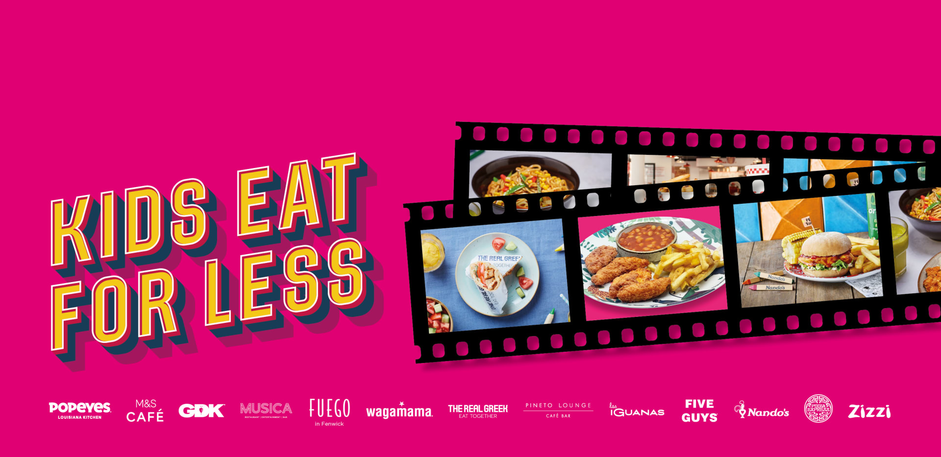 - One free kids’ meal per paying adult. Each adult must spend a minimum of £20 to qualify for one free kids’